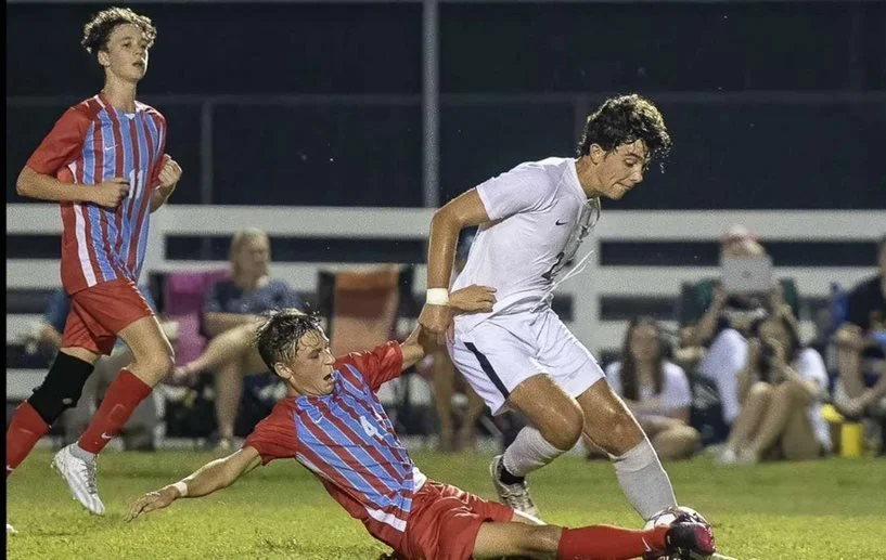 Ethan Carson (10) goes in for the slide tackle. The team finished the season 14-6.